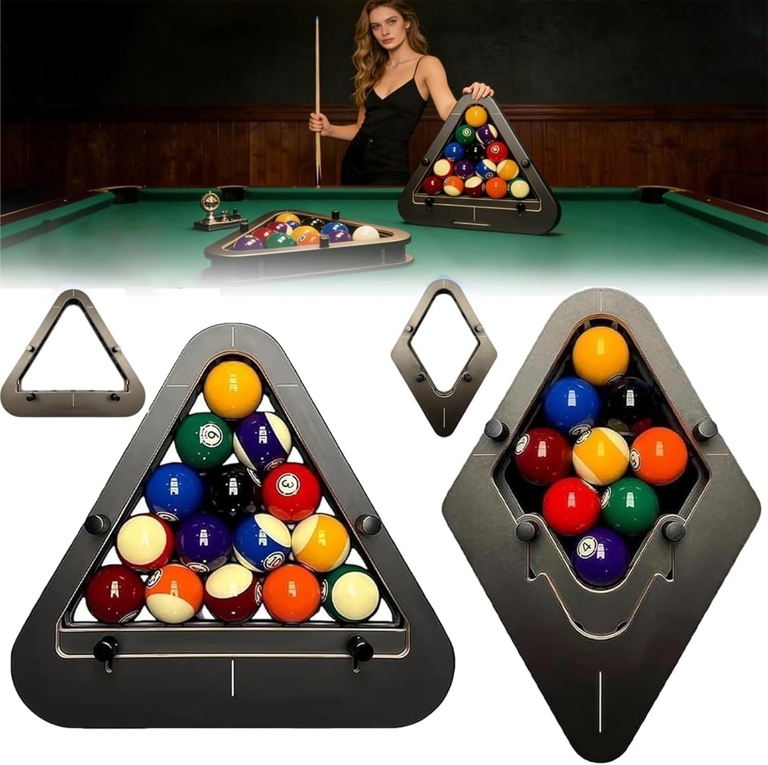 Precision-Engineered Professional Billiard Rack System That Eliminates Gaps, Wood Billiard 8-Ball/9-Ball Pro Triangle/Diamond Pool Ball Racks, Consistent Tight Tool for Standard Pool Tables